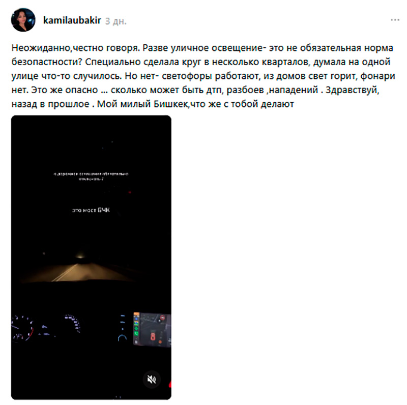 «Куда мы катимся? Что будет дальше? Интернет нам тоже отключат, это дело времени. Вчера дочь со школы шла, говорит, вся школьная территория без света. Коридоры тоже без света. Она учится до 18.25, но свет отключили в 18.00. Сегодня нам зачем-то сократили уроки, что происходит? Кл.рук. на мои вопросы так и не ответила. Причины нам не известны. Часть города без воды, часть без отопления, часть без света. С 22.00 закон тишины, дальше что придумают?», — пишет в соцсетях пользователь под ником _kriss_sii.