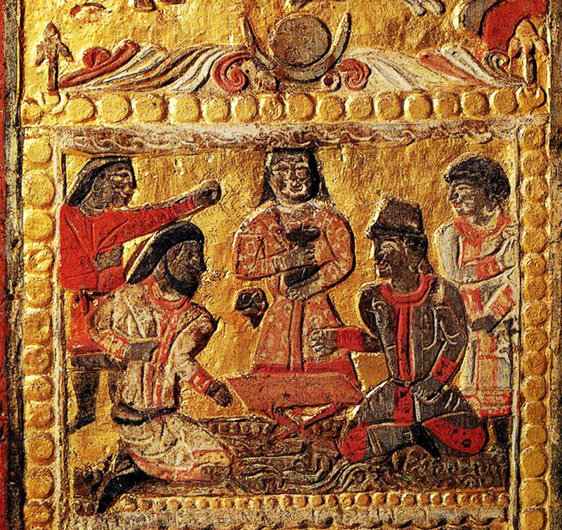 Согдийский торговец (справа) принимает знатного тюрка (слева). Изображение второй половины VI века с гробницы в Сиане (Китай)