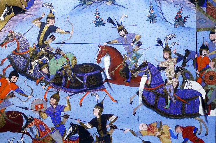 Иллюстрация из "Шахнаме" Фирдоуси, изображающая бой тюрок с персами