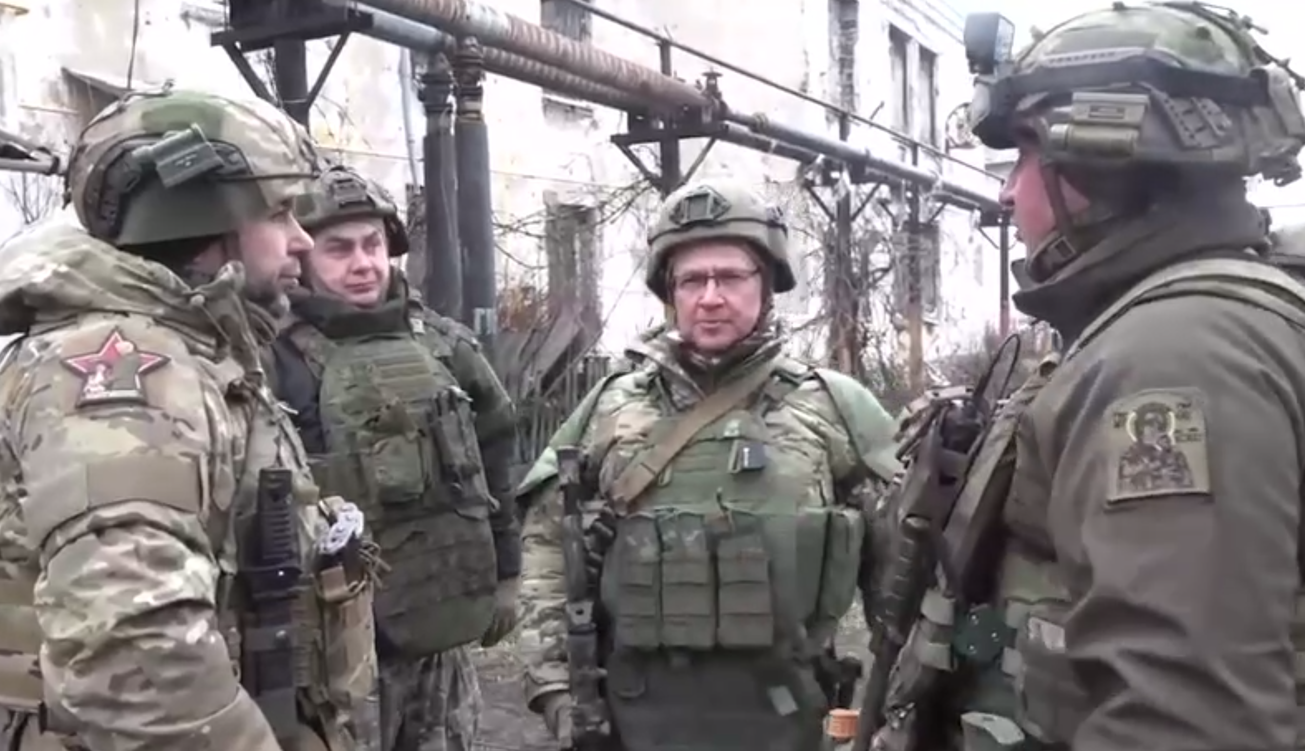 Сергей Кириенко с автоматом наперевес ходит по улицам Мирнограда - города в Покровском районе Донецкой области Украины. Кадр из официального видео, март 2026-го года.