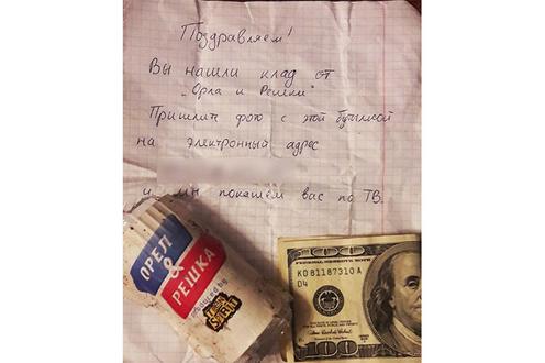 «Клад в славном Душанбе нашел ученик 8-го класса Никита Лоянский. К сожалению, фотографироваться кладоискатель отказался, но снимок найденной бутылки у нас есть. Наши поздравления Никите», — написано в посте под фотографией письма и бутылки с логотипом телепередачи, найденной восьмиклассником.