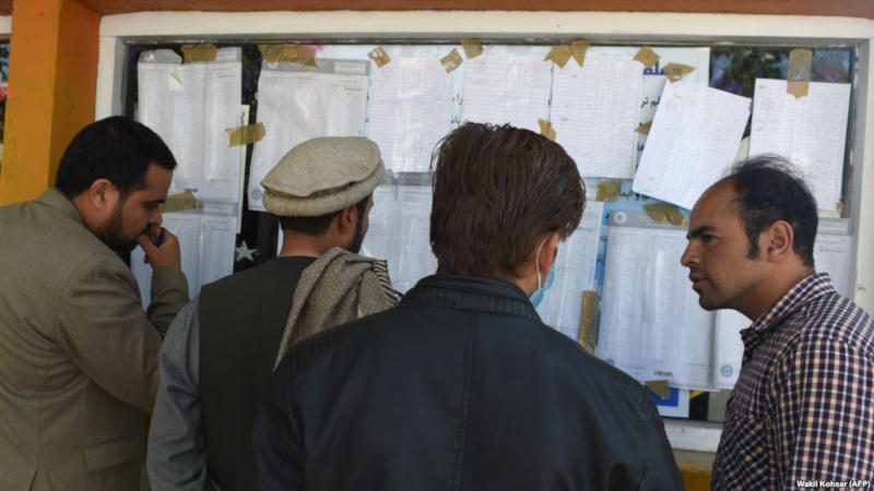 Результаты голосования на выборах в парламент на участке в Кабуле, 22 октября 2018 года. Фото RFE/RL