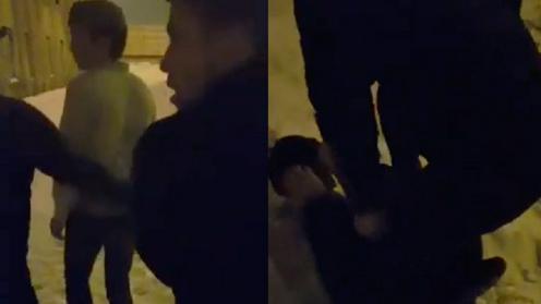 Повалив на снег, таджикистанцы начинают избивать узбекистанца ногами, требуя извиниться. Жертва при этом пытается закрыть от ударов лицо, кричит и повторяет: «Братья, не надо…» Человек, который комментирует процесс избиения, просит других участников расправы: «Только в лицо не бейте!» В конце один из таджикистанцев требует остановить съемку со словами: «Выключи камеру, сейчас мы ему уши отрежем, выключи…»