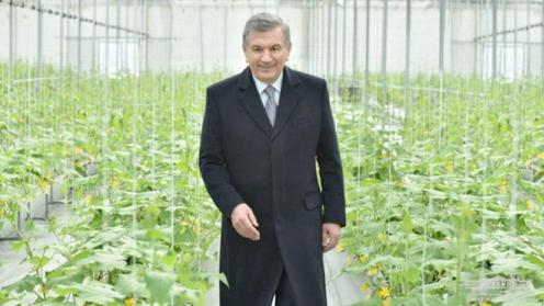 Мирзиёев осматривает гидропонную теплицу предприятия Gran ruta de la seda в Хавастском районе Сырдарьинской области. Фото пресс-службы президента Узбекистана