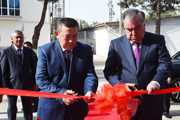 Эмомали Рахмон (справа) на открытии объекта в Кулябе. Фото пресс-службы президента Таджикистана