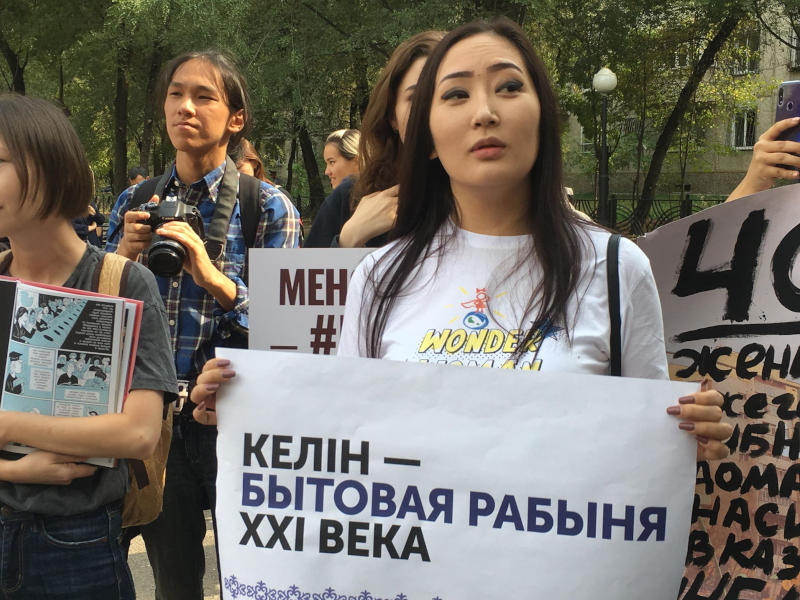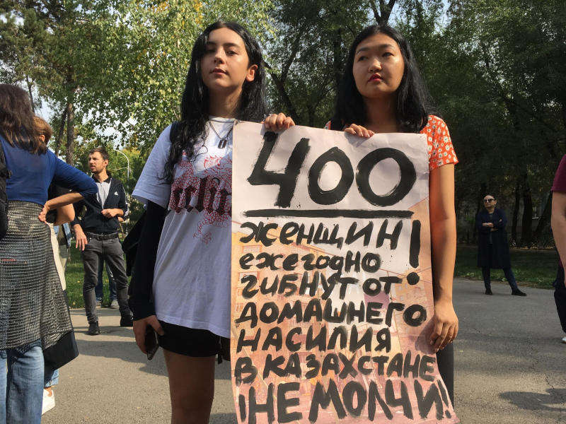Участницы митинга рассказывали о проблемах, с которыми сталкиваются женщины в Казахстане. «Я знакома с несправедливым отношением к женщинам, – заявила Айя Кузембаева. – Я росла убежденной, что ничего не смогу добиться в жизни, кроме роли смиренной хозяюшки с тремя детьми. У нас принято, что если брак дочери распадается, то во всем виновата женщина, и она становится позором для всей семьи. Очень важно, чтобы не только наше государство начало работать над защитой жертв домашнего насилия, но и развивалась сфера психологии, которая помогает справляться с последствиями насилия».