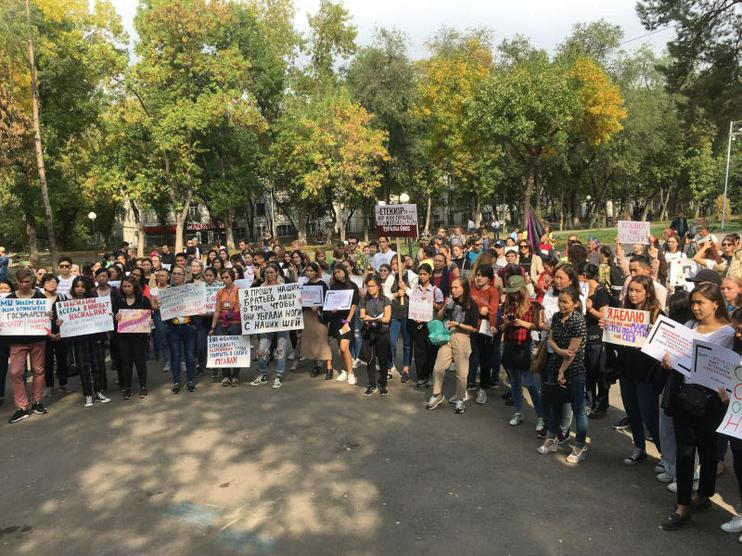 Представительница феминистской группы Kazfem Вероника Фонова сообщила, что активистки подали несколько десятков заявок, прежде чем им разрешили митинг. При этом некоторым, по ее словам, «грозили отчислением из университета».