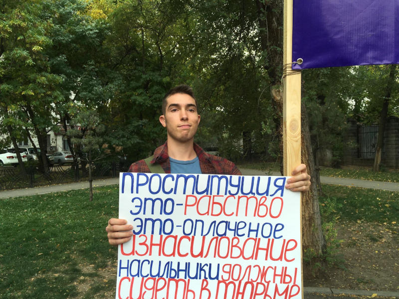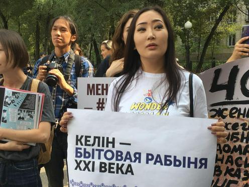 Собравшиеся держали плакаты с надписями «Бьет – значит сядет», «Права женщины – права человека», «Ни бога, ни мужа, ни хана», «Феминизм бостандыкка жеткiзедi» (Феминизм приведет к свободе), «Она сядет за самооборону, он не сядет за насилие».