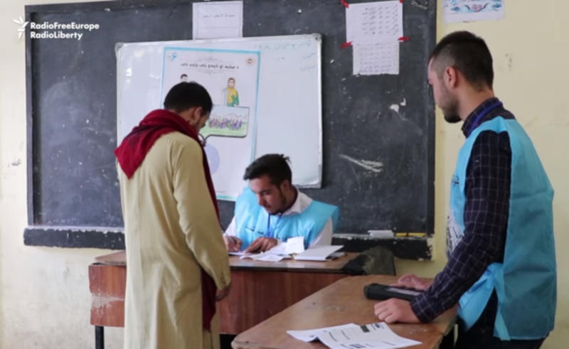Избирательный участок в Афганистане. Кадр из видео RFE/RL