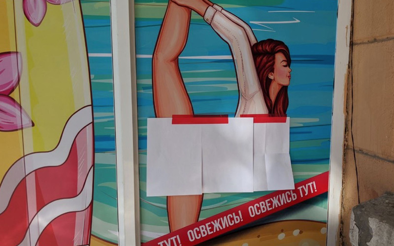 Хокимият (администрация) Яккасарайского района Ташкента обязал владельца смузи-бара на улице Шота Руставели демонтировать арт-баннер с полуобнаженной девушкой, демонстрирующей гимнастическую растяжку. Об этом сообщил Telegram-канал «Эффект Макаренко» со ссылкой на владельца заведения.