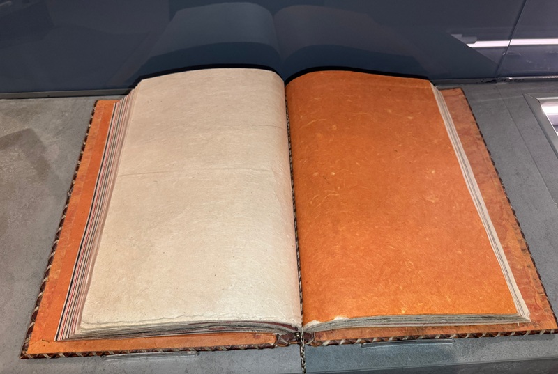 «Ряд источников связывает распространение технологии с событиями после Таласской битвы, когда китайские мастера передавали навыки бумагоделия. Вместе с тем ряд исследователей отмечает наличие местных традиций и до этого периода. В результате сформировалась самаркандская школа бумагоделия, получившая развитие в последующие столетия. Образцы в экспозиции изготовлены по традиционной технологии – посетители могут взять их в руки и рассмотреть структуру листа», — отметил старший научный музея Обиджон Тангиров.